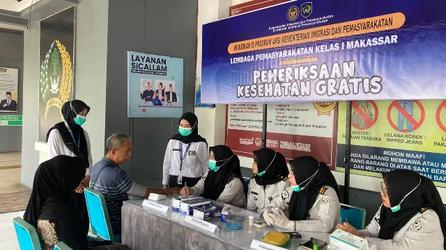 Makassar – Lembaga Pemasyarakatan (Lapas) Kelas I Makassar terus menunjukkan komitmennya dalam memberikan pelayanan kepada masyarakat melalui kegiatan pemeriksaan kesehatan gratis bagi pengunjung serta masyarakat di sekitar Lapas, yang dilaksanakan pada Selasa (10/3). Kegiatan ini merupakan bagian dari implementasi 15 Program Aksi Kementerian Imigrasi dan Pemasyarakatan, khususnya pada program pelayanan kesehatan gratis dan bakti sosial kepada masyarakat di sekitar Unit Pelaksana Teknis Pemasyarakatan.